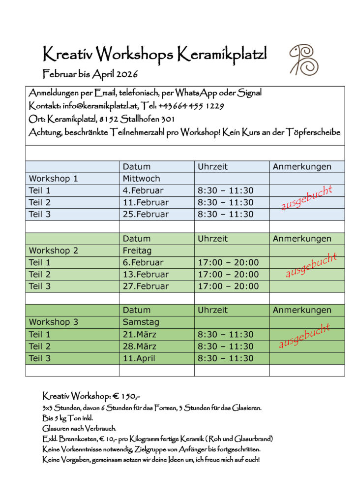 Workshops Mein Atelier, hier lässt es sich wunderbar arbeiten Intensivworkshop Köpfe Intensivworkshop Köpfe Figurale Darstellung Figurale Darstellung